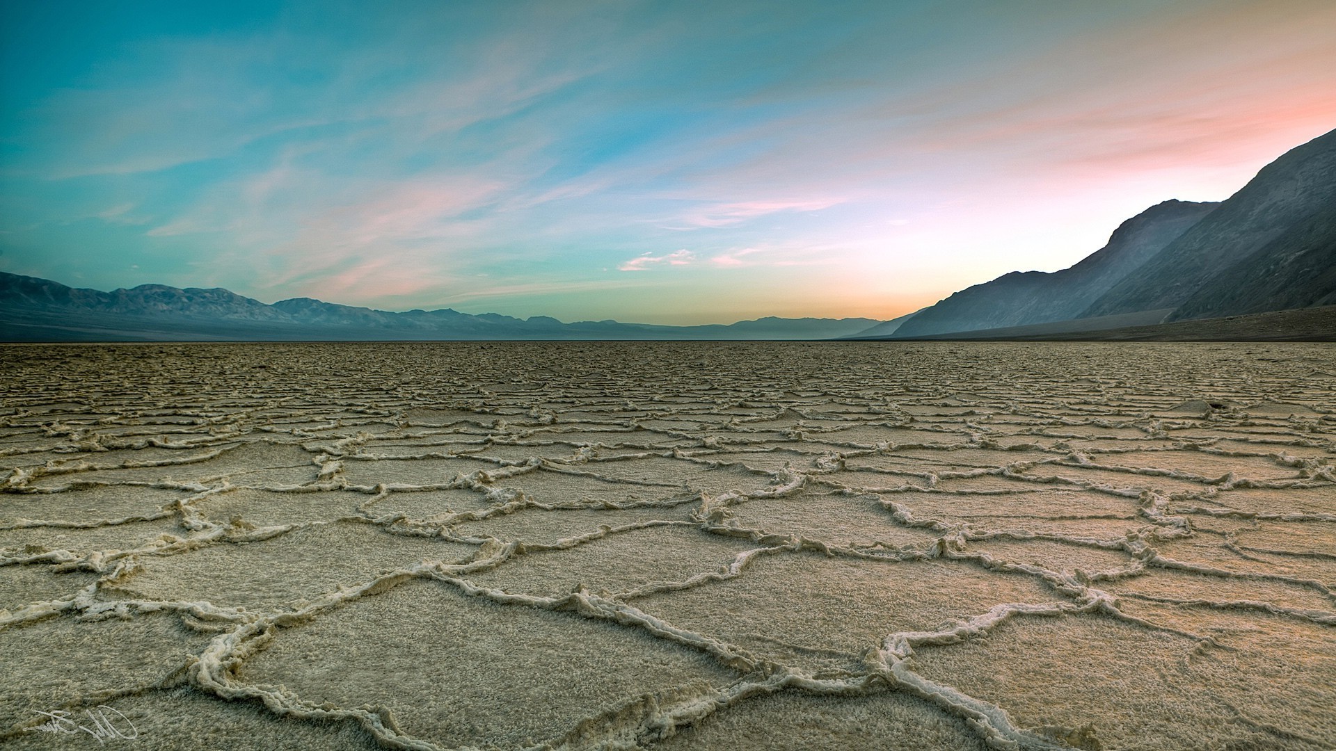 Terre longtemps laissée sans eau sur fond de ciel rose