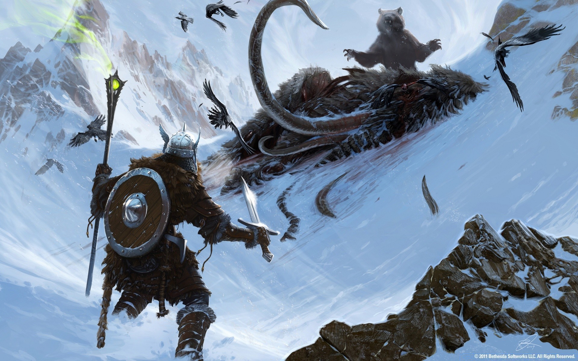 Vol d'un dragon sur les eaux dans The elder scrolls