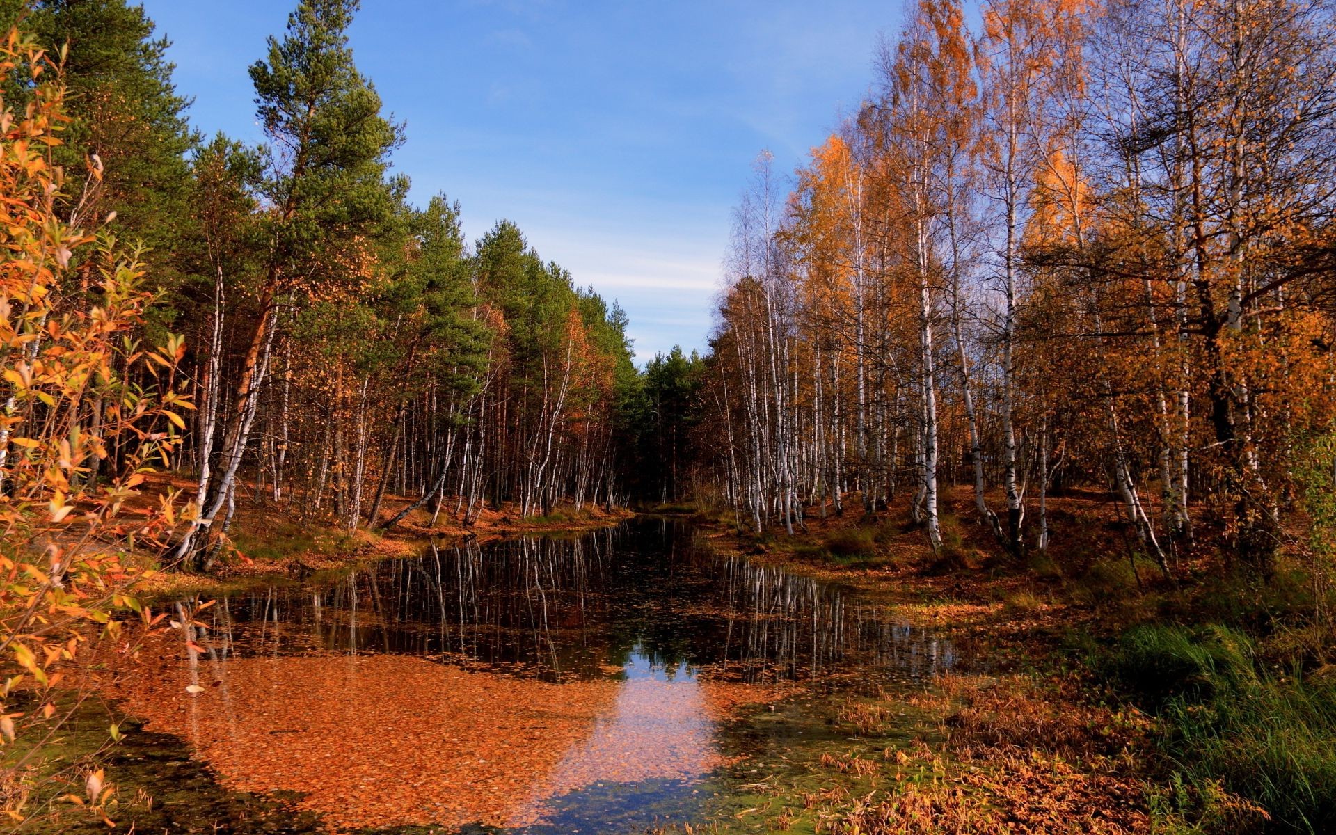 Forêt d'automne se reflétant dans le ruisseau