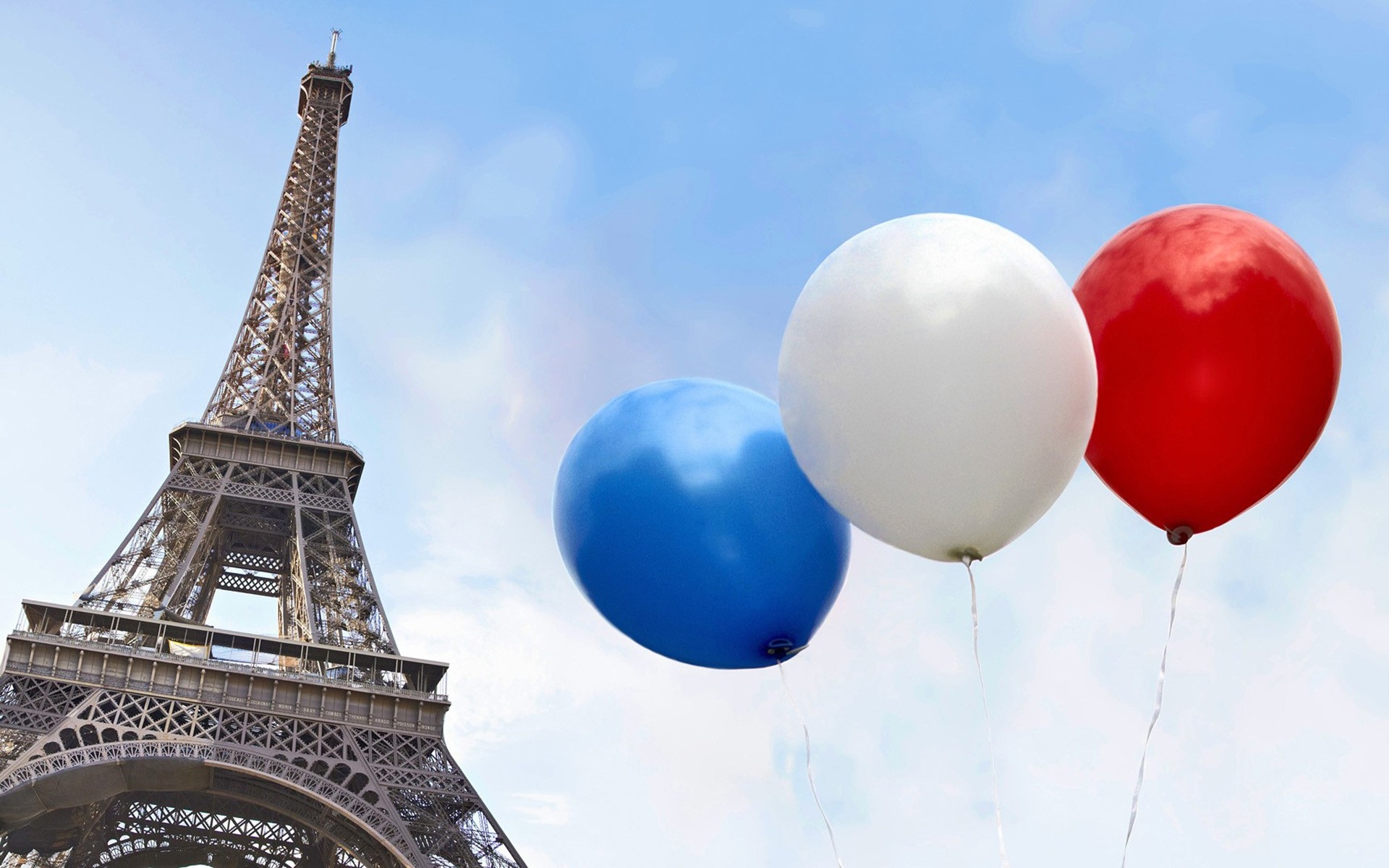 Vue de la tour Eiffel d'en bas sur fond de ciel