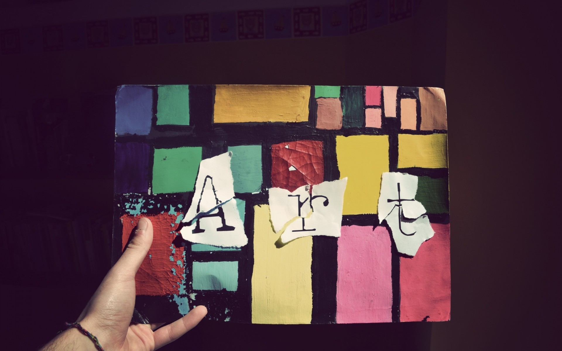 Travail créatif dans une technique d'art mixte-gouache, applique en papier déchiré