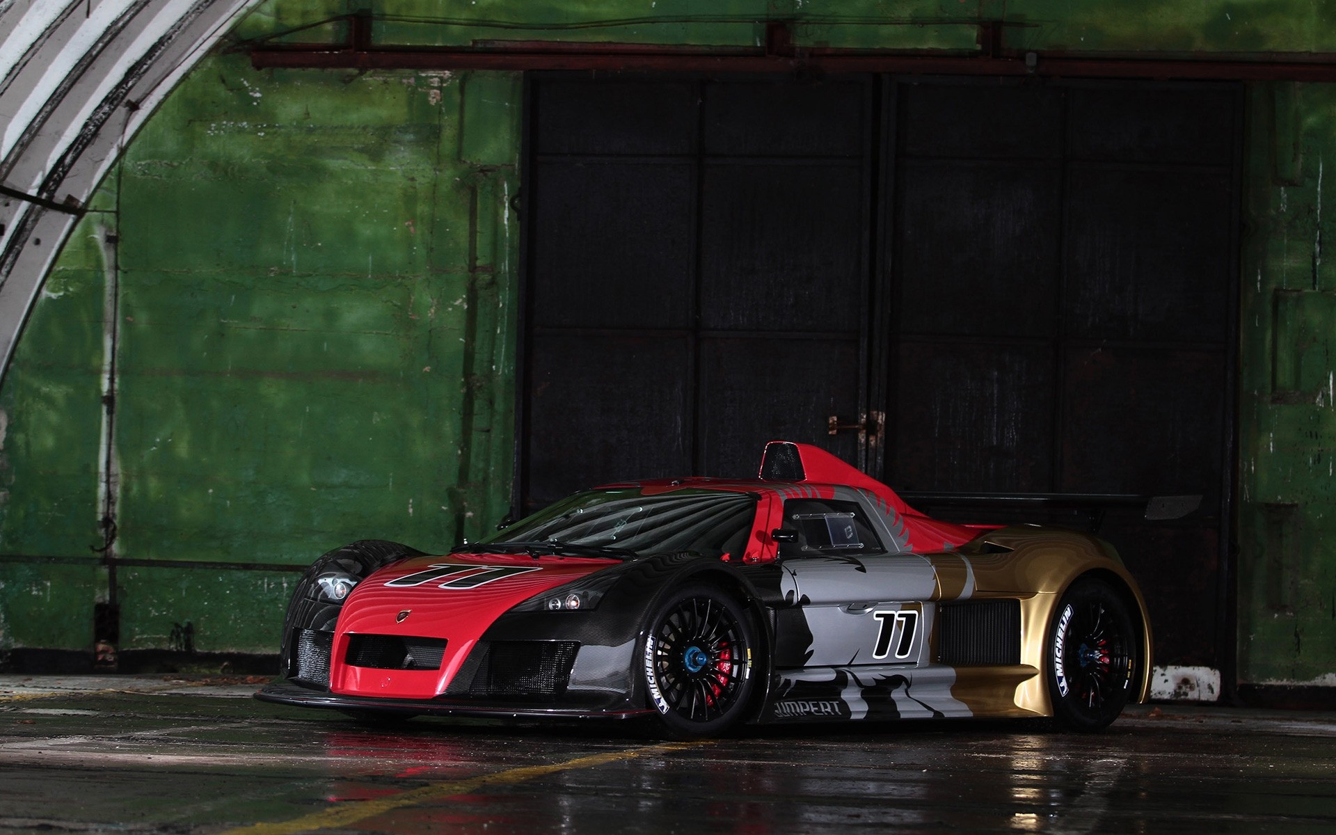 Voiture de sport, réflexion sur l'asphalte mouillé