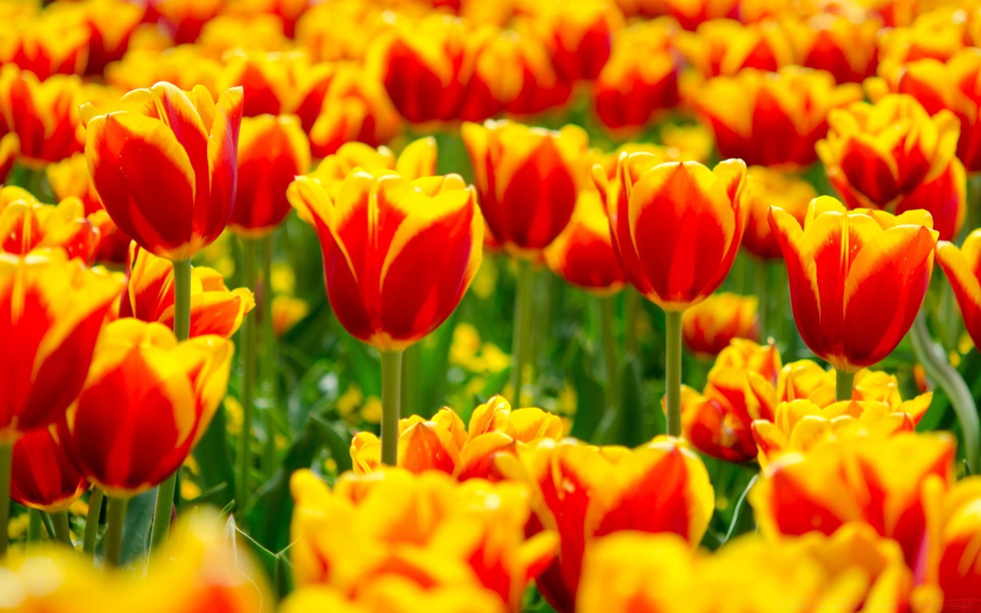 Champ de tulipes rouge et jaune