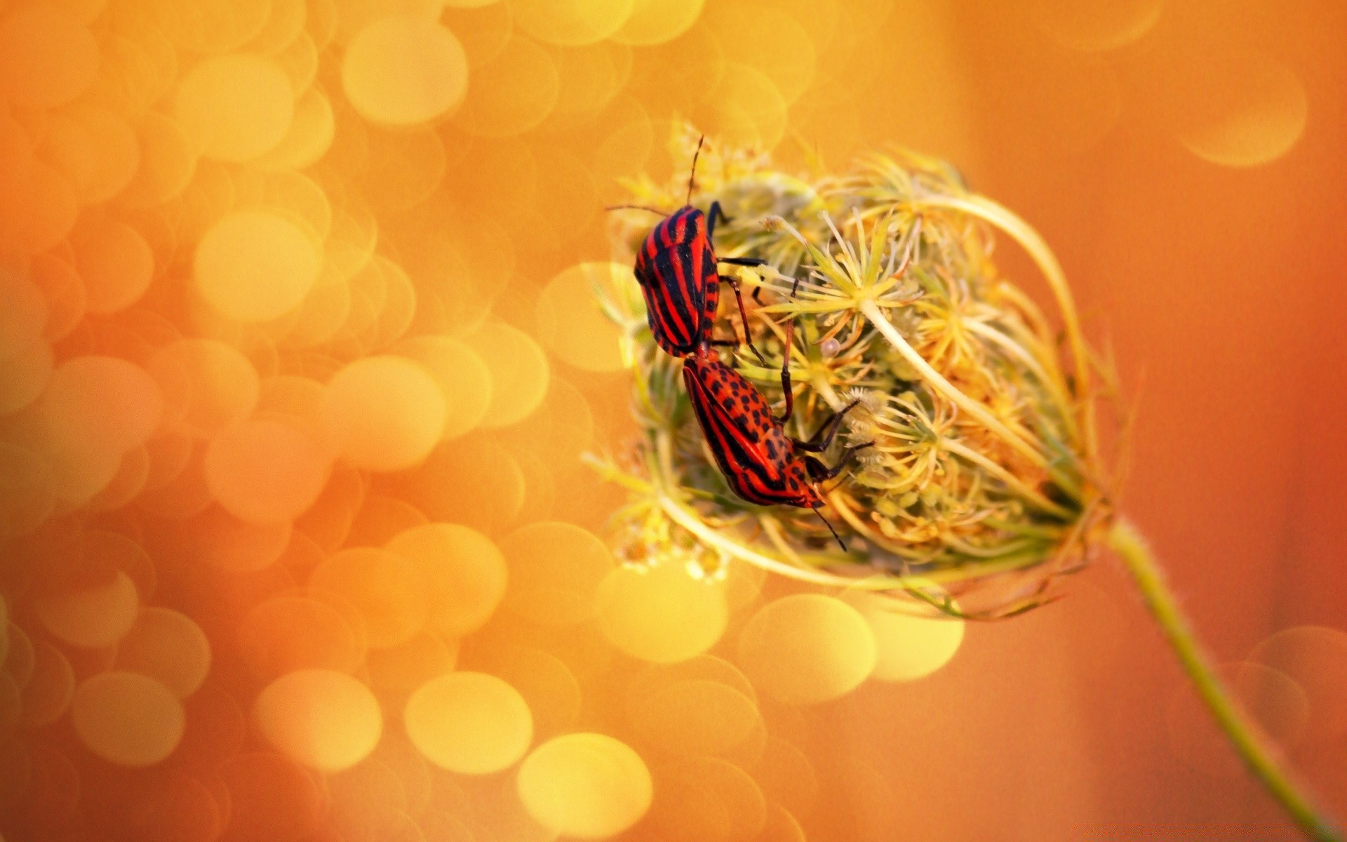 Insecte rouge sur pissenlit sur fond orange