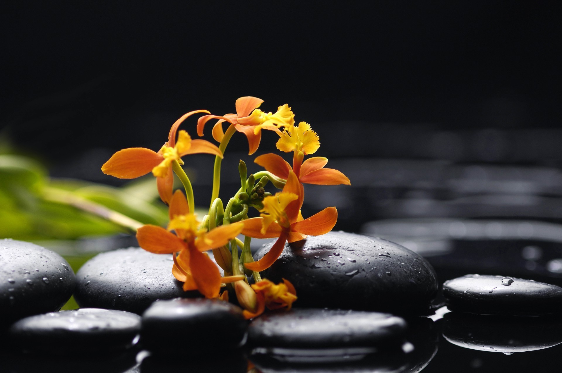 Parapluie orange se trouve dans la forêt sur l'herbe verte