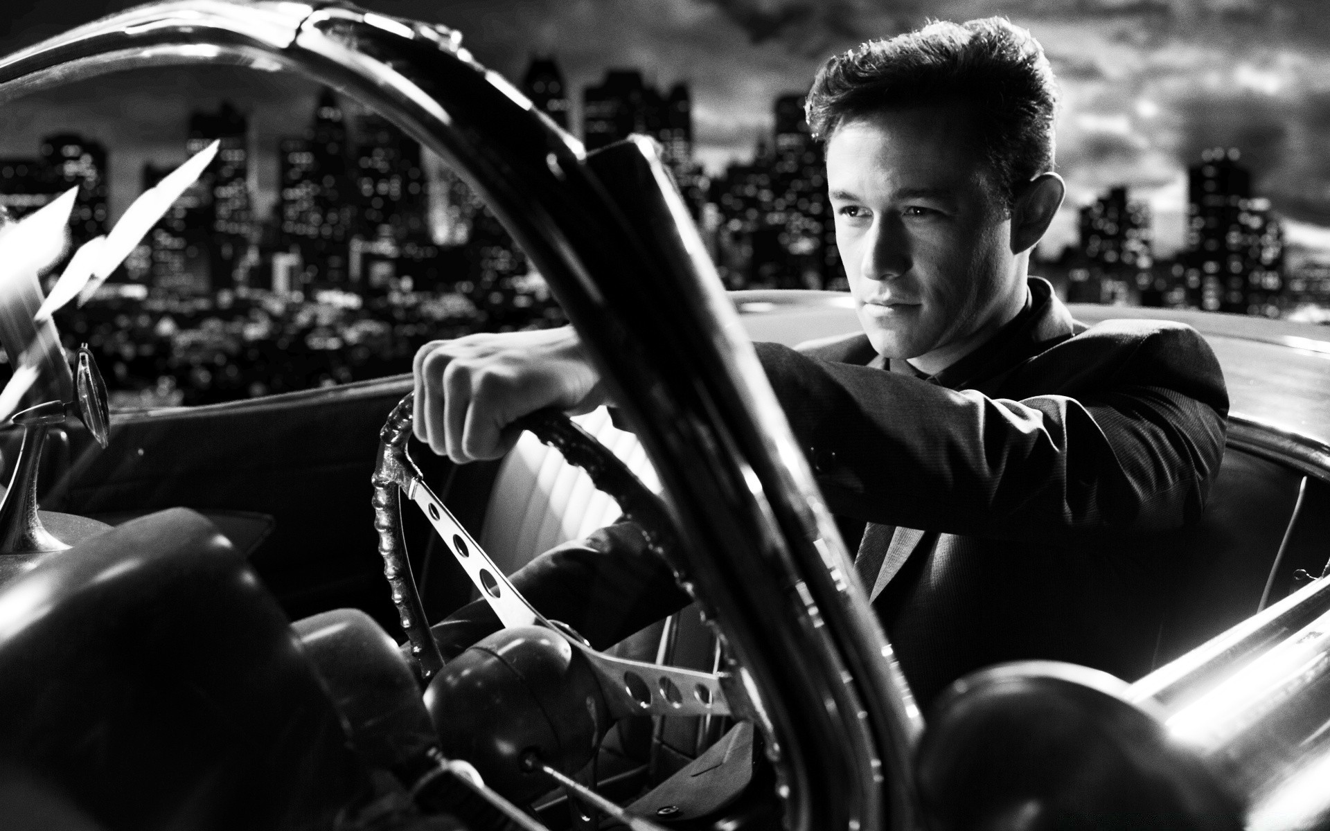Portrait noir et blanc d'un homme au volant d'une décapotable