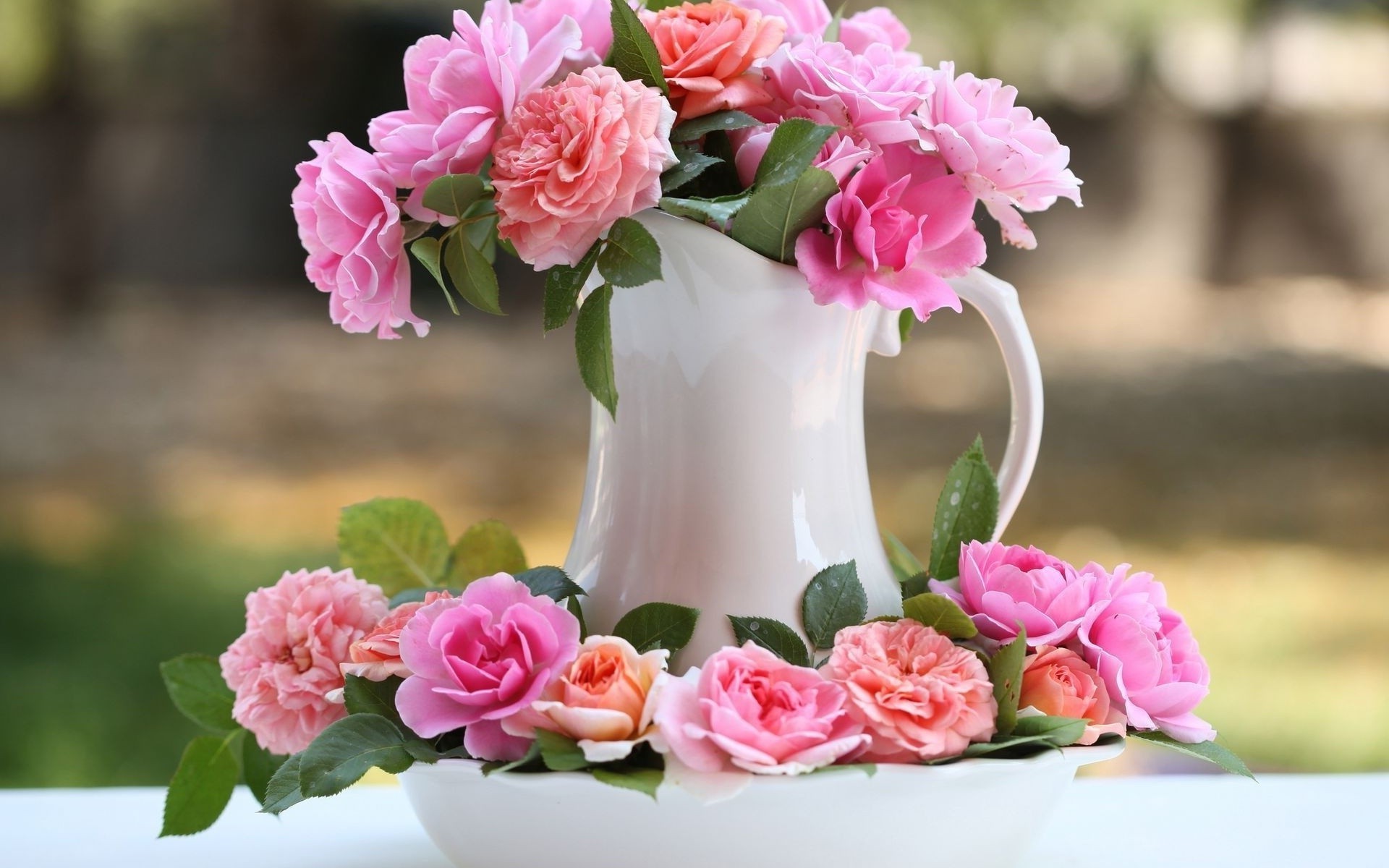 FLEUR DANS UN VASE ET DES PERLES SUR LA TABLE