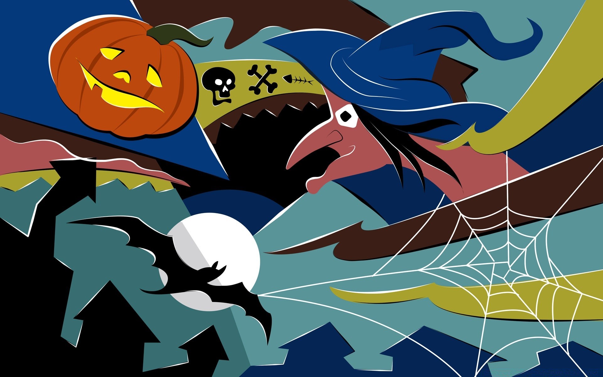 Illustration multicolore pour Halloween avec des parfums et des citrouilles