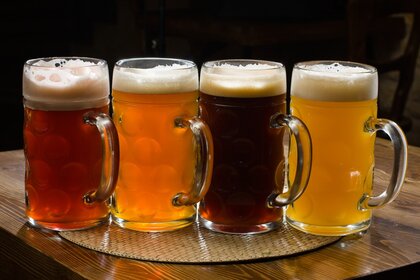 Quatre verres à bière avec différents types de bière
