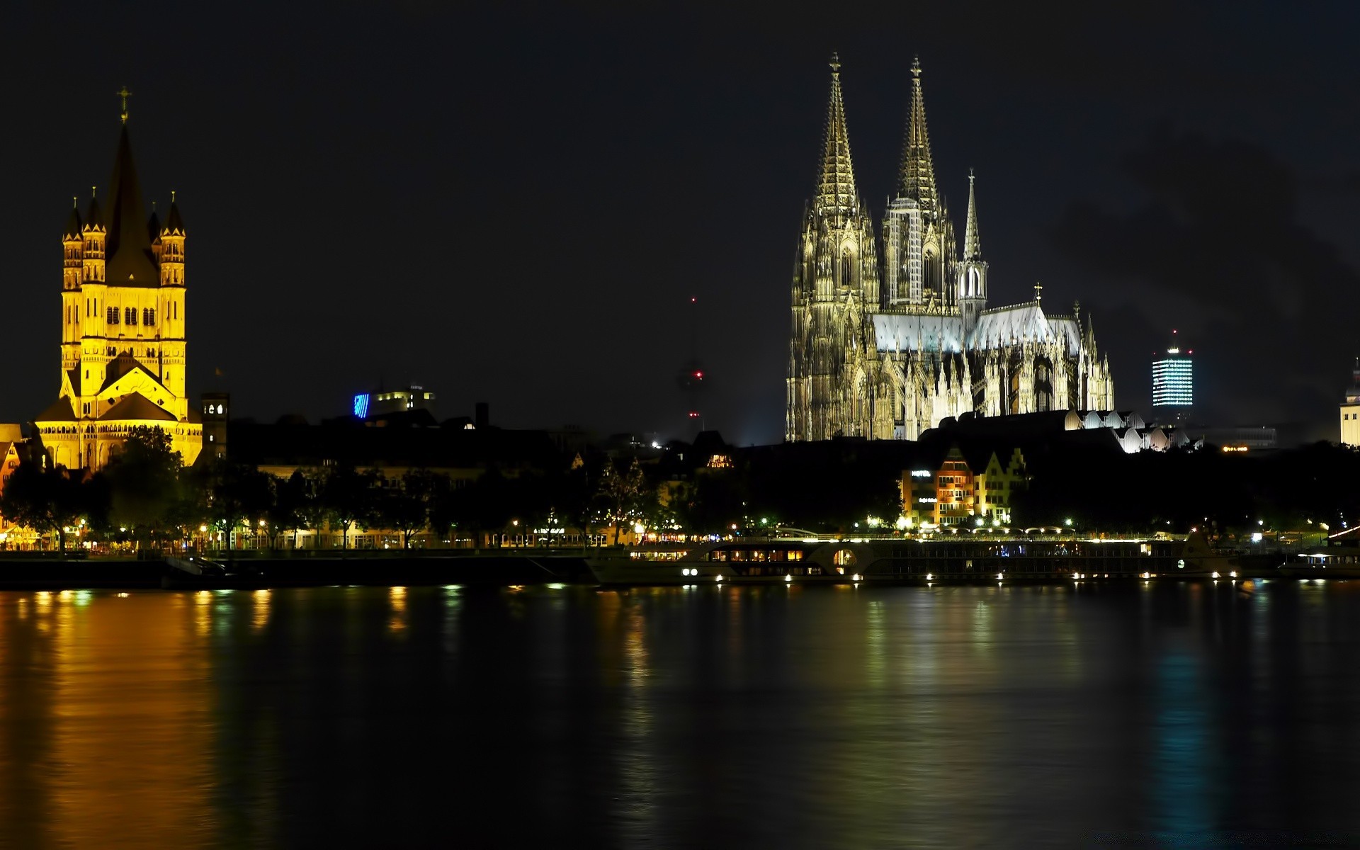 Les tours s'élèvent au-dessus de la mer sur fond de ciel nocturne