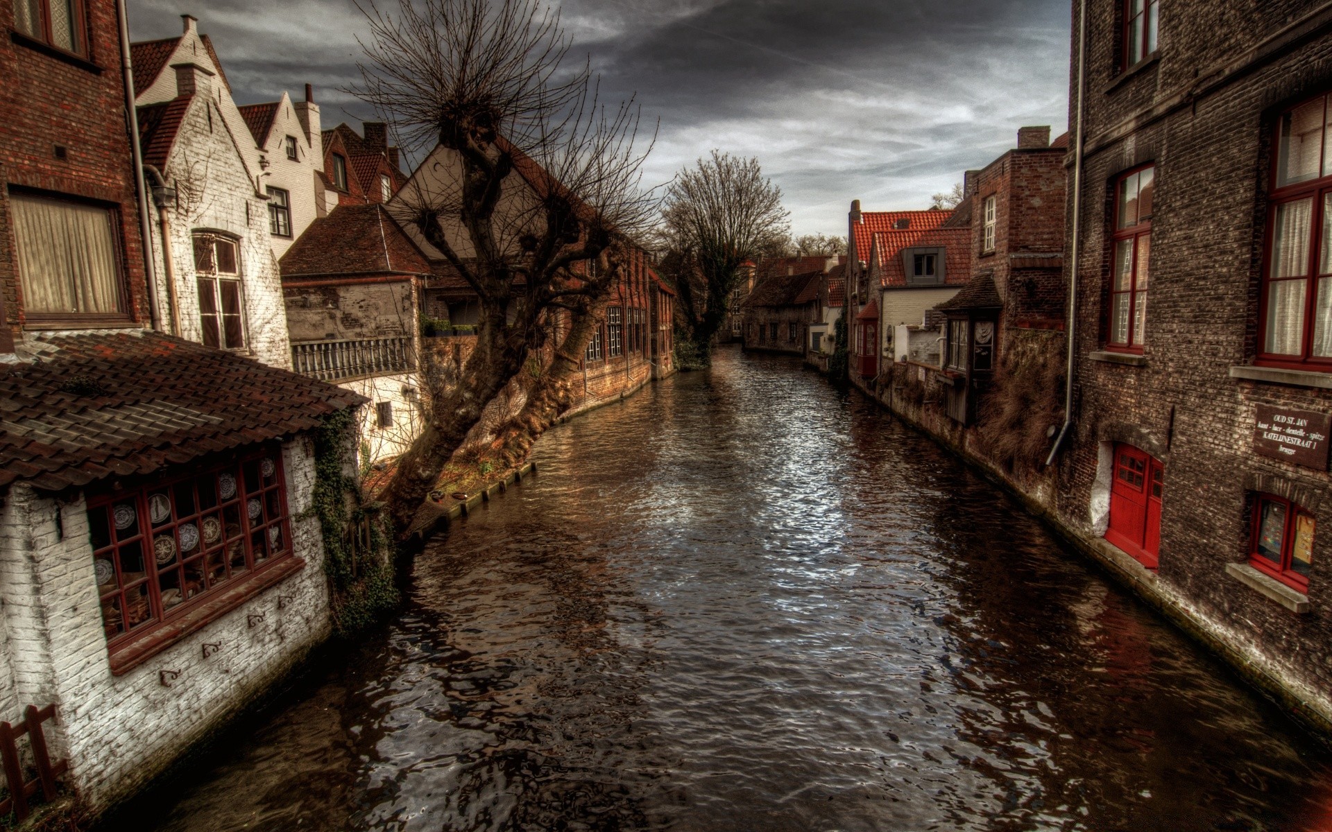 Canal d'automne le long des rues de la ville