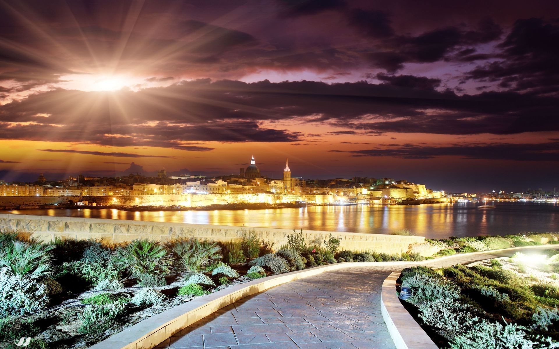 Pont éclairé, belle ville, grande rivière, agréable de voyager