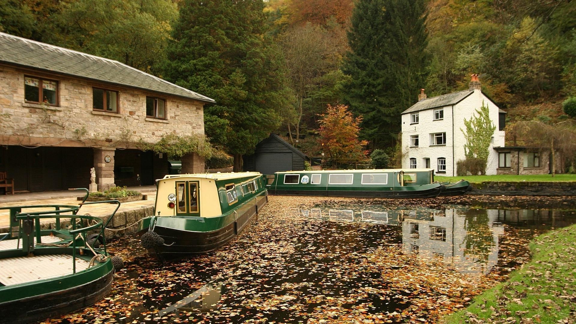 Bateaux sur l'eau avec feuillage