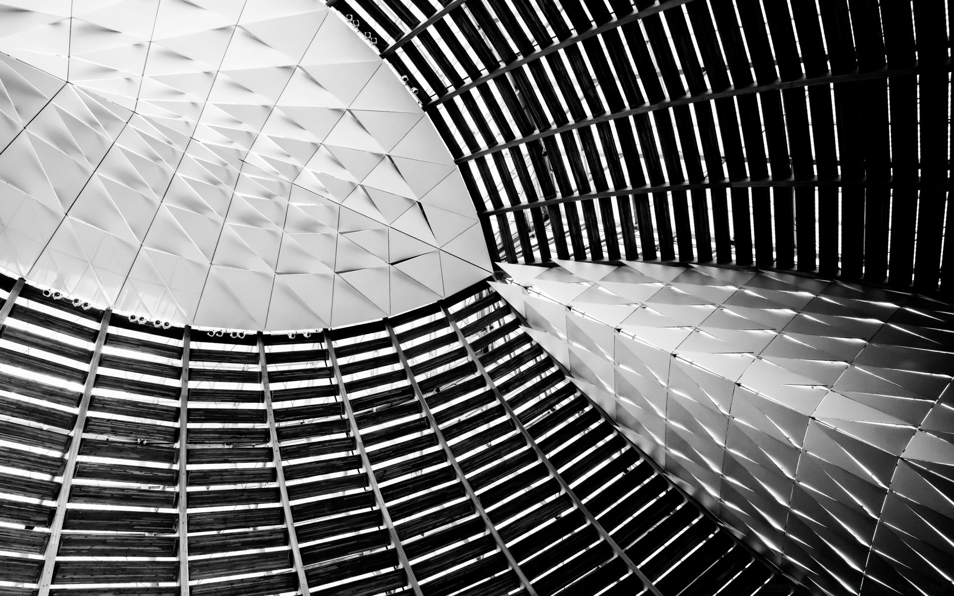 Architecture de la ville et les voitures qui passent en noir et blanc