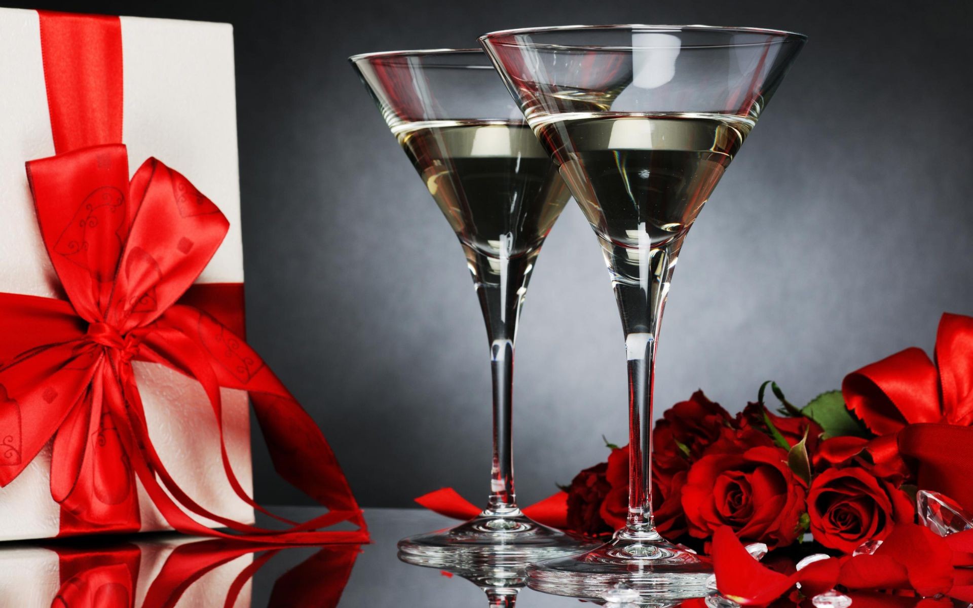Deux verres à vin avec boisson et fleur sur fond flou de la mer