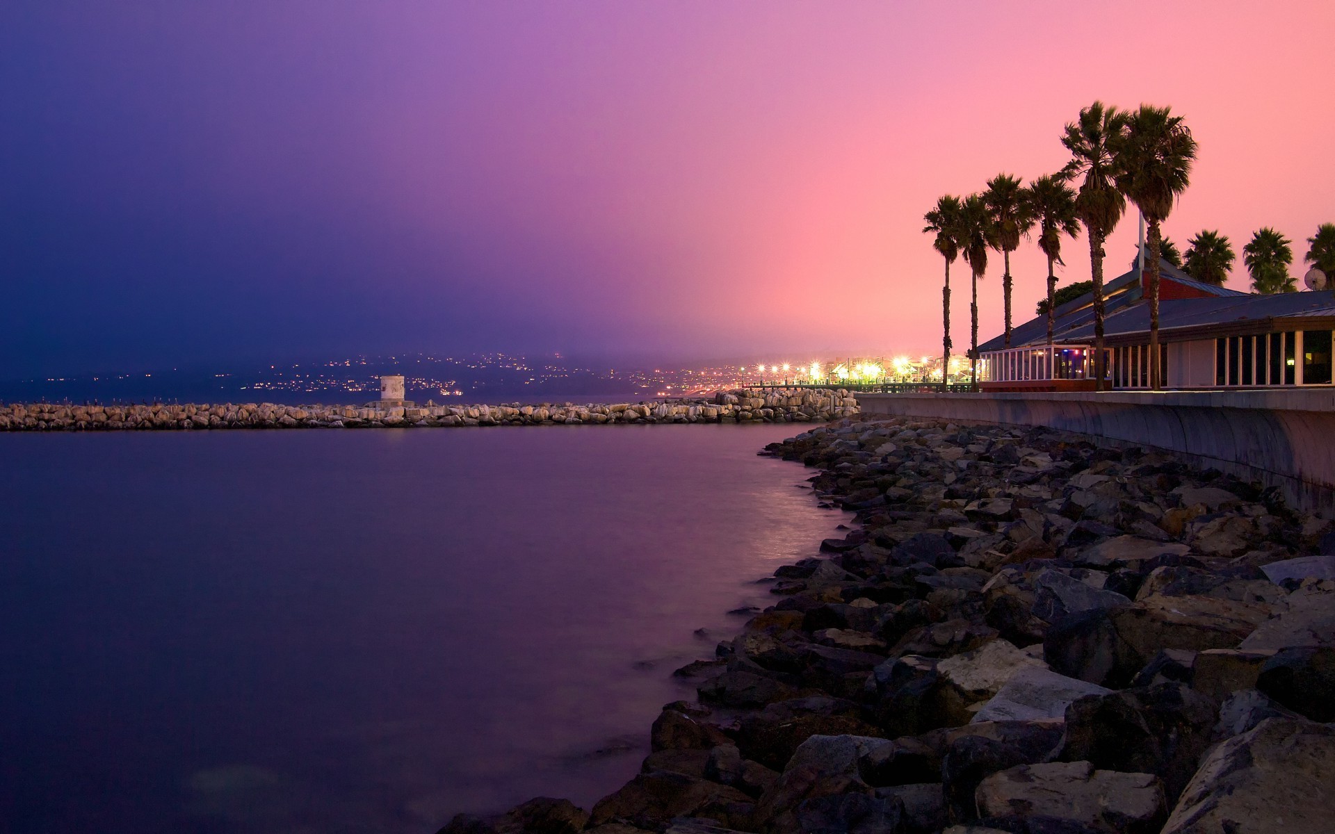 Coucher de soleil violet et plage