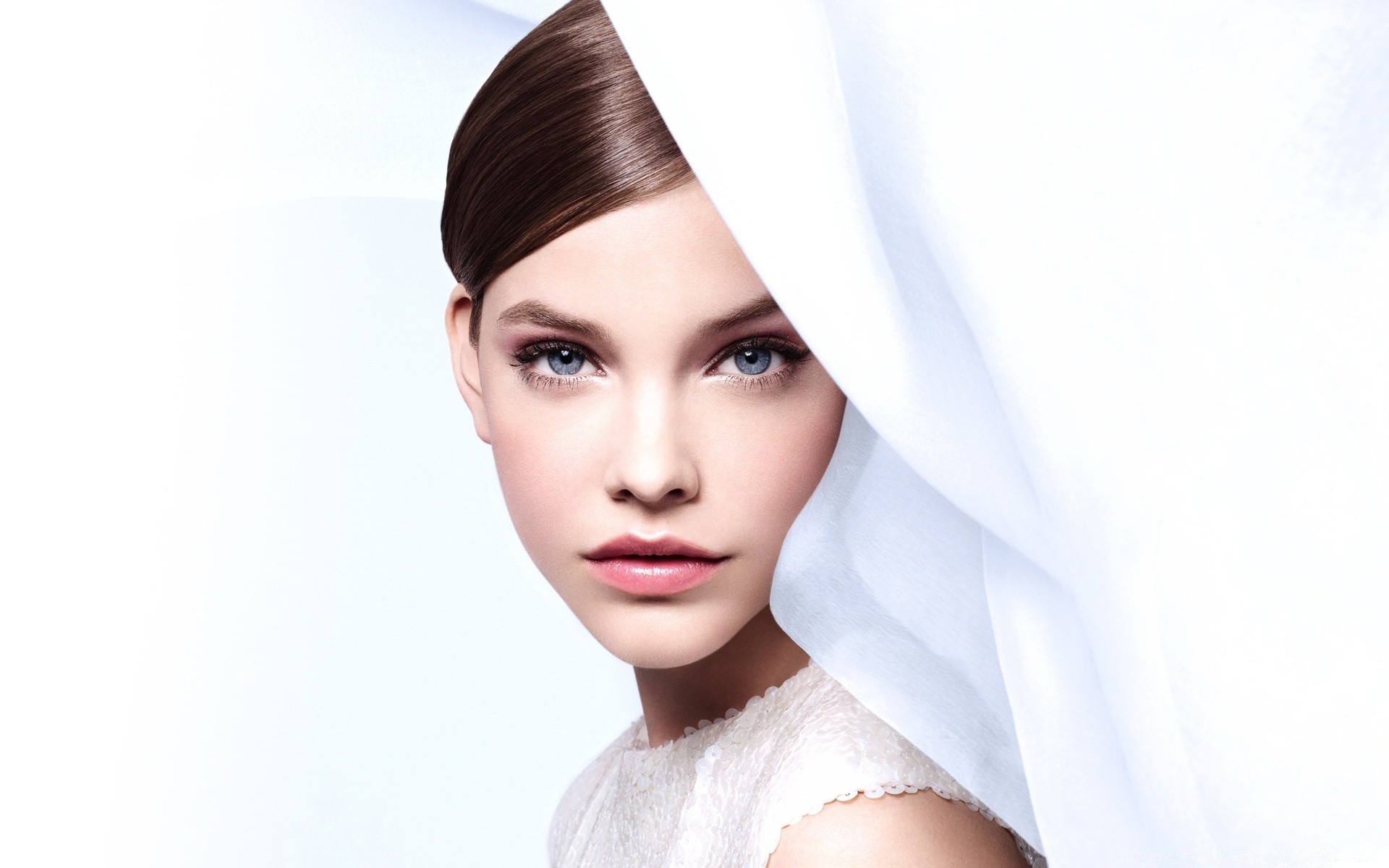 Sur fond rose, le visage de la jeune fille et le nom est écrit en anglais