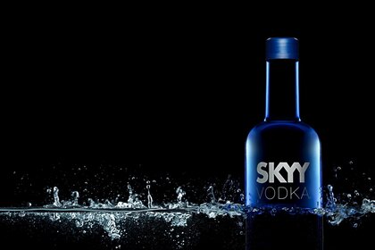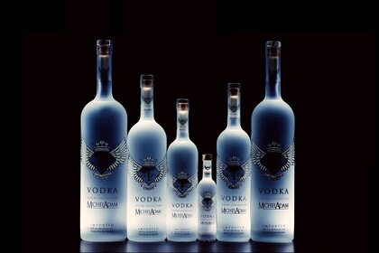 Une bouteille de vodka se tient à côté de la glace et de la mentheUne bouteille de vodka se tient à côté de la glace et de la menthe