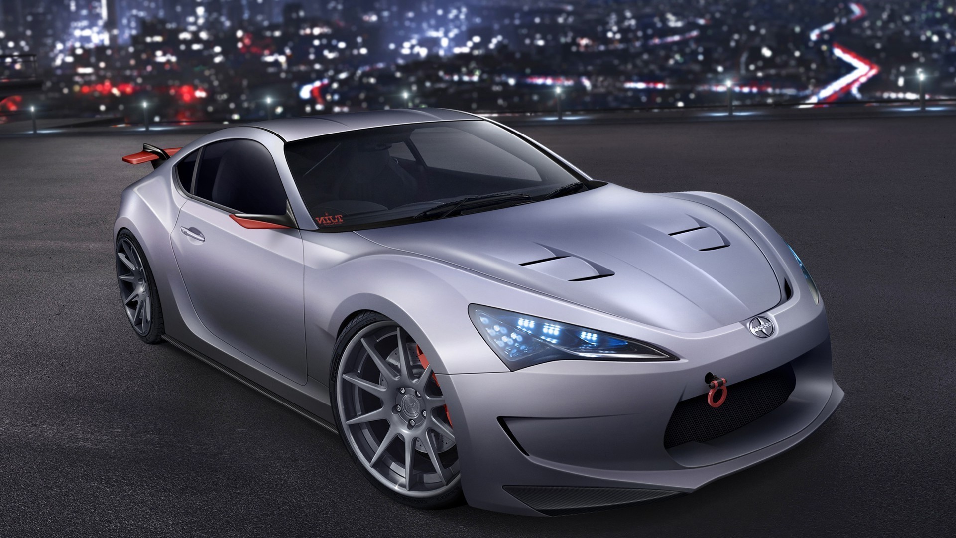 Une voiture de sport argentée se dresse sur la route parmi les collines verdoyantes