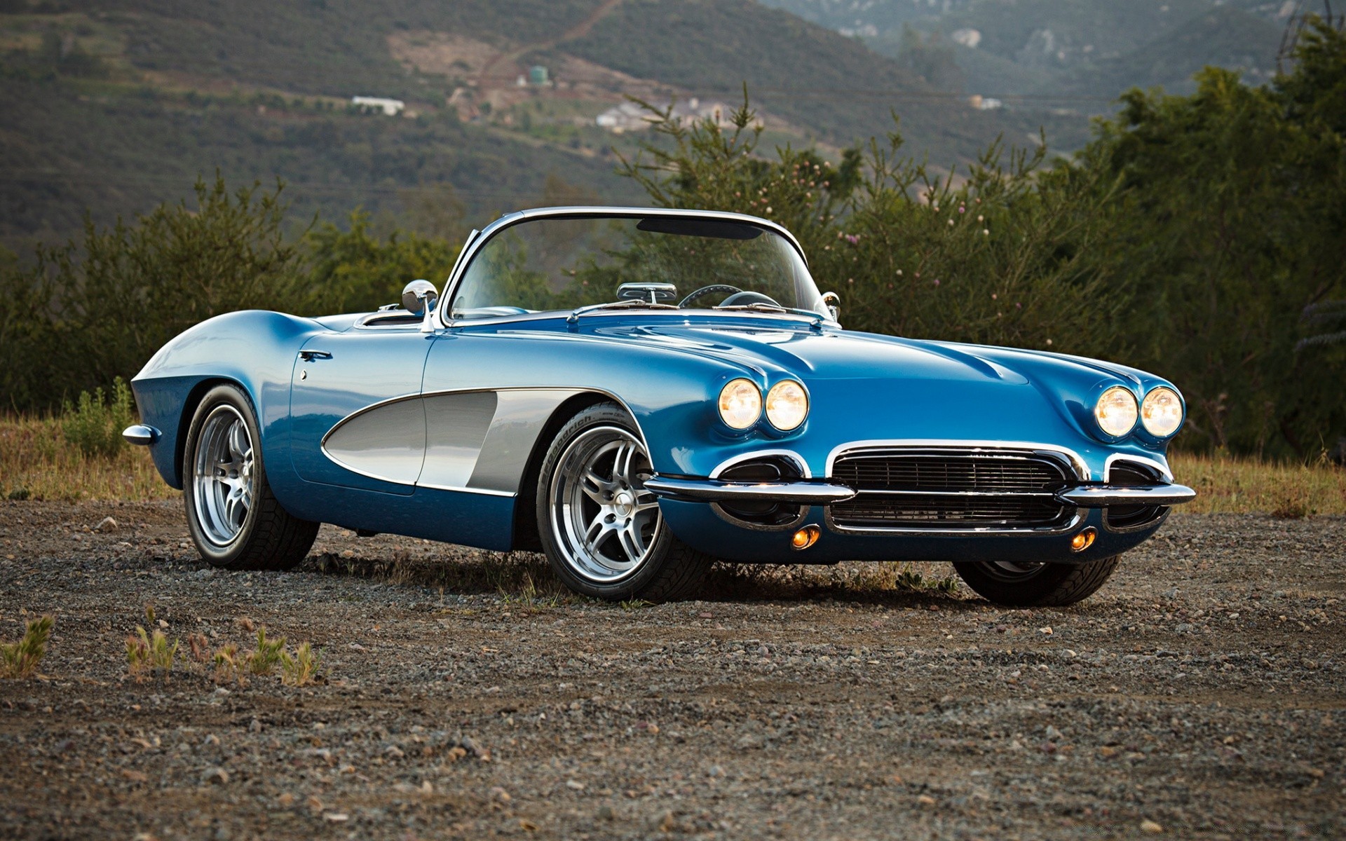 Voiture rétro bleu sur la nature