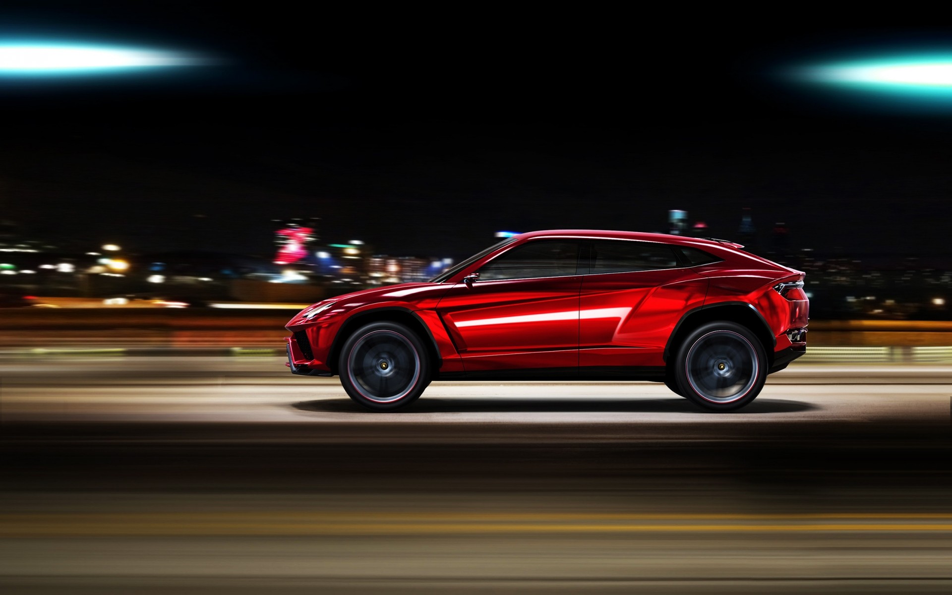 Voiture rouge se précipite dans la ville de nuit