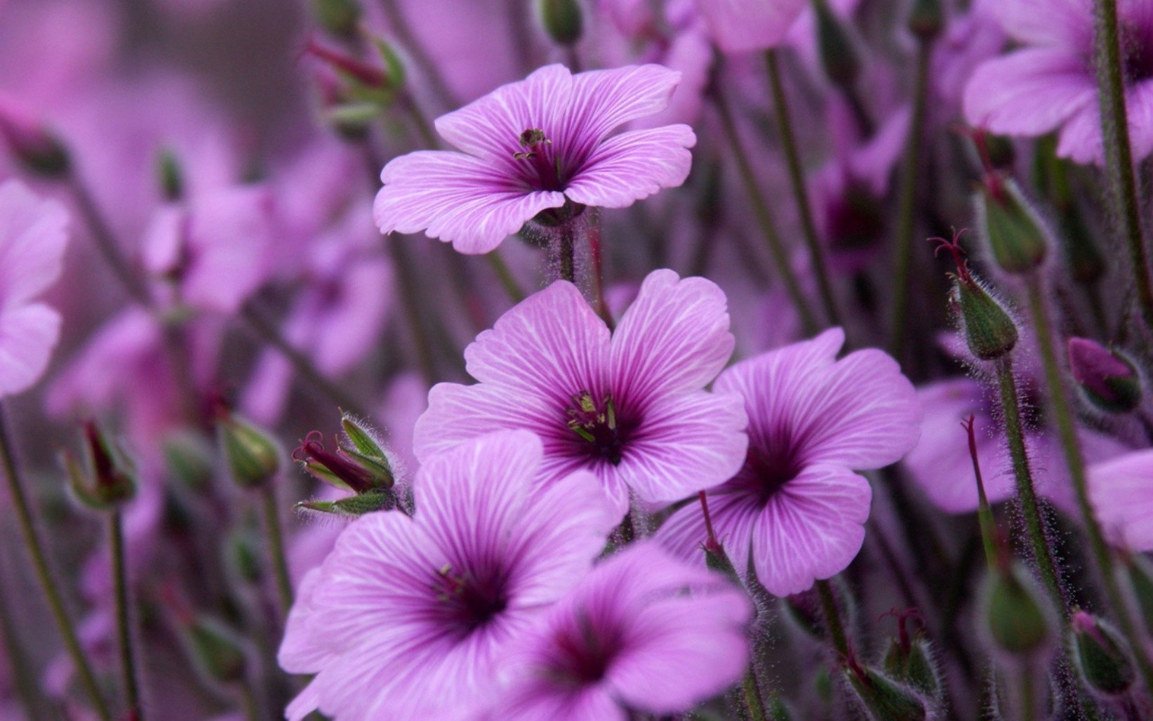 Fleurs violettes avec verdure en macro