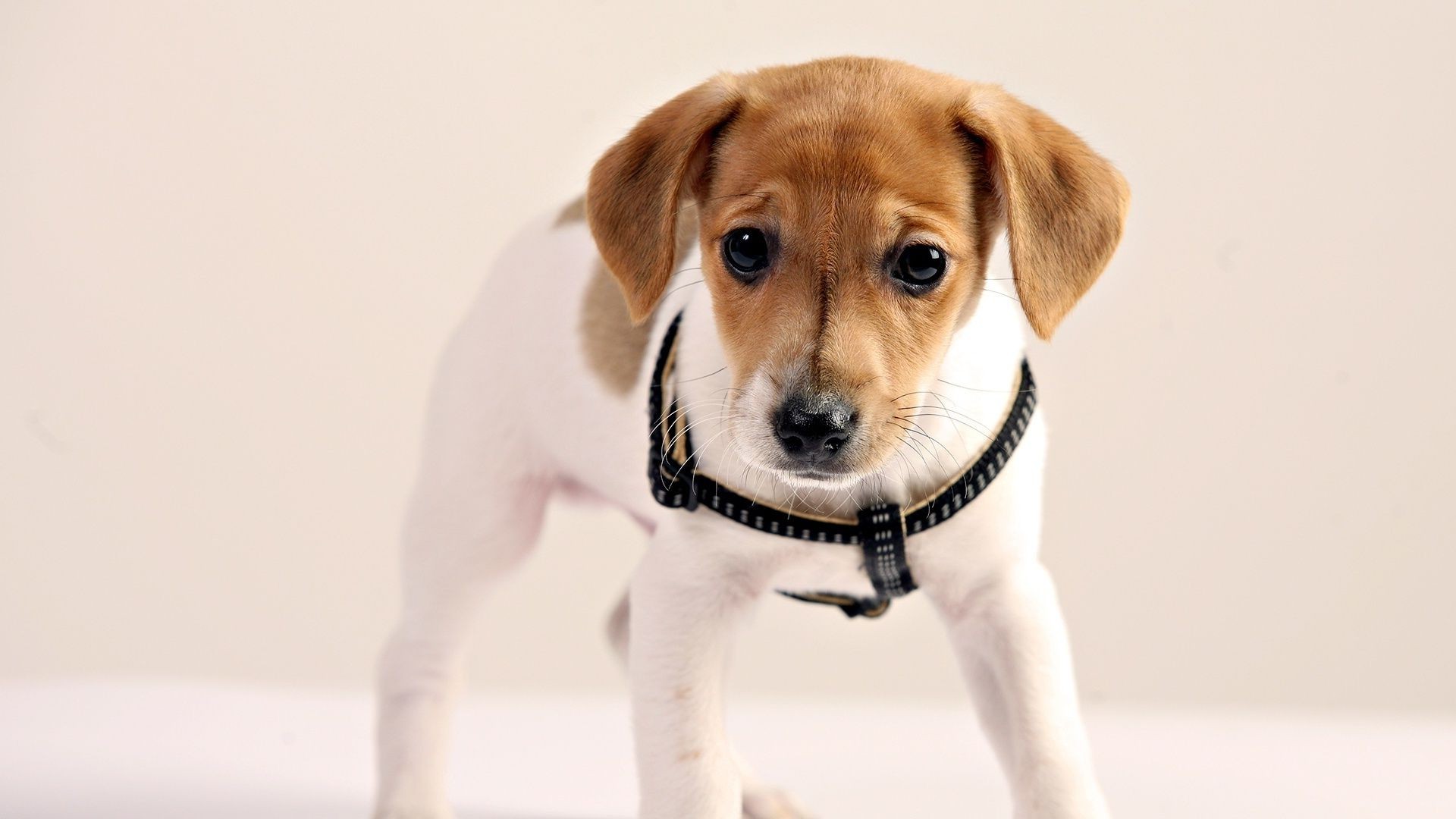 Un chien avec des yeux différents et une langue tirée se trouve sur le banc